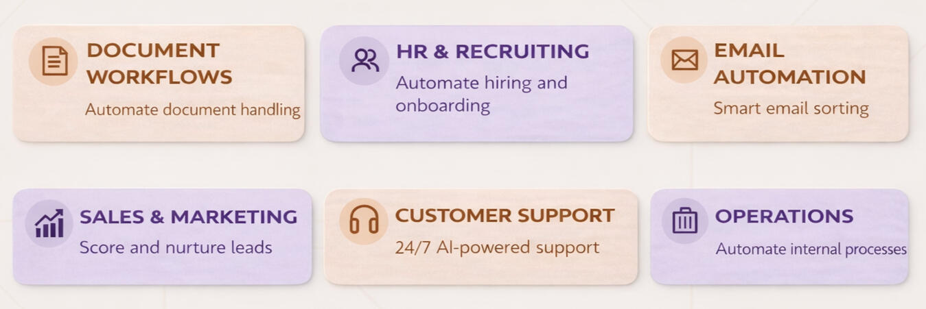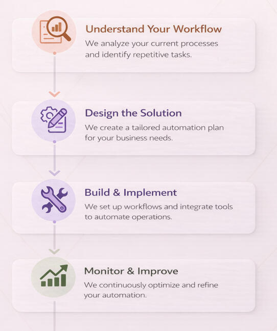 From lead follow-ups to support requests and daily operations, we build systems that reduce manual work and keep your business running smoothly.